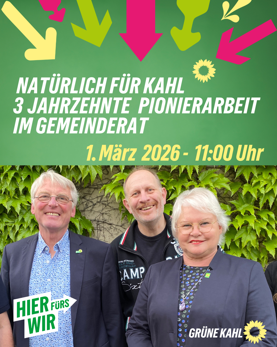 Doch „Staffelstab weitergeben“ bedeutet auch Wissen, Kompetenzen und Erfahrungen zu transportieren. Und so freuen wir uns, Sie und Euch als WegbegleiterInnen, sowie interessierte Bürgerinnen und Bürger am Sonntag, 1. März 2026, einzuladen, um mit diesen drei Kahler Kommunalpolitik-Urgesteinen ihr Engagement noch mal Revue passieren zu lassen!