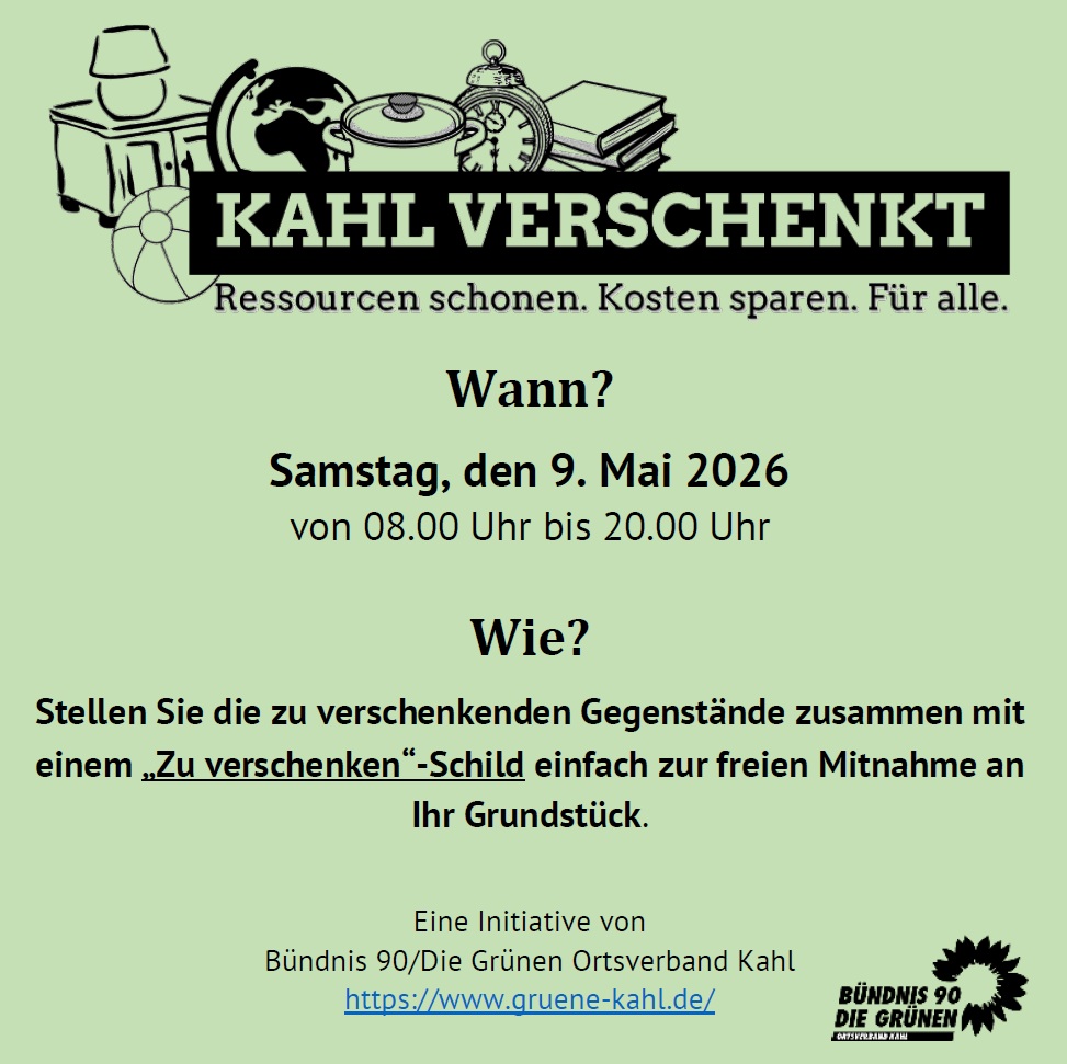 haben Sie zu Hause gut erhaltene, aber ausgediente Dinge, welche zu schade zum Entsorgen sind? Oder sind Sie auf der Suche nach genauso einem „guten Stück“ aus zweiter Hand? Dann nutzen Sie die Aktion „Kahl verschenkt“!